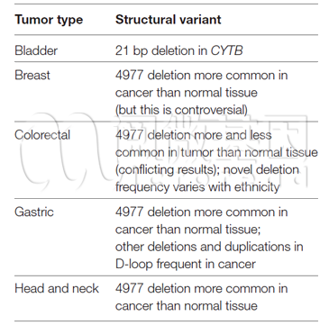 mtDNA的SNV和InDel和多种癌种密切相关[1]