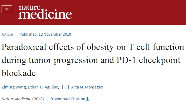 导读:肥胖真的一无是处吗?或许不见得。近期,加州大学戴维斯分校的一项最新研究表明,肥胖既可载舟(促进肿瘤生长),亦可覆舟(成为免疫抑制治疗的靶点)。对肿瘤君来说,真是成也肥胖,败也肥胖啊!这或许能给悲观的肥胖患者带来一丝希望。相关成果发表于《Nature Medicine》。